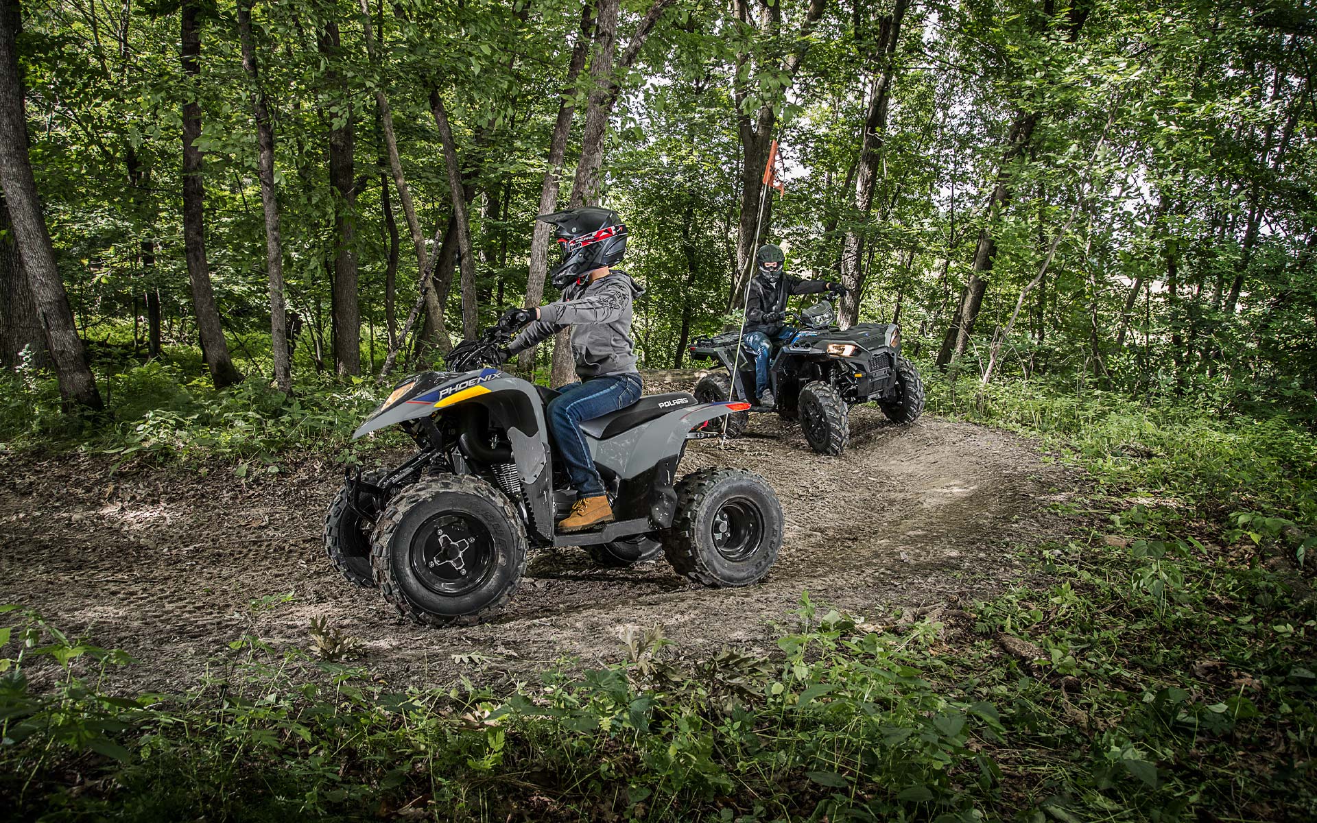With a 196cc 4-stroke engine and easily adjustable speed limiter it allows younger riders to grow with their ATV. Made for riders ages 14+.